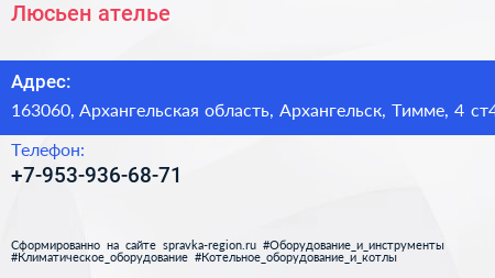 Люсьен, ателье по адресу 163060, Архангельская область, Архангельск, Тимме, 4 ст4 в дальнейшем Организация, размещена в следующих категориях: