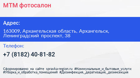 МТМ, фотосалон по адресу 163009, Архангельская область, Архангельск, Ленинградский проспект, 38 в дальнейшем Организация, размещена в следующих категориях: