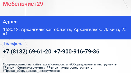 Мебельчист29 по адресу 163012, Архангельская область, Архангельск, Ильича, 25 к1 в дальнейшем Организация, размещена в следующих категориях: