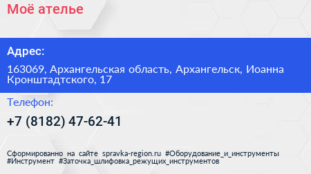 Моё, ателье по адресу 163069, Архангельская область, Архангельск, Иоанна Кронштадтского, 17 в дальнейшем Организация, размещена в следующих категориях: