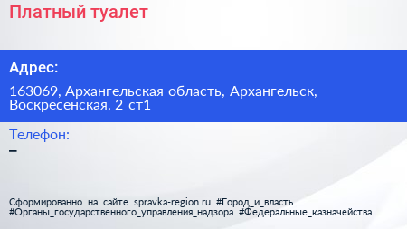 Платный туалет по адресу 163069, Архангельская область, Архангельск, Воскресенская, 2 ст1 в дальнейшем Организация, размещена в следующих категориях: