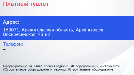 Платный туалет по адресу 163071, Архангельская область, Архангельск, Воскресенская, 93 к2 в дальнейшем Организация, размещена в следующих категориях: