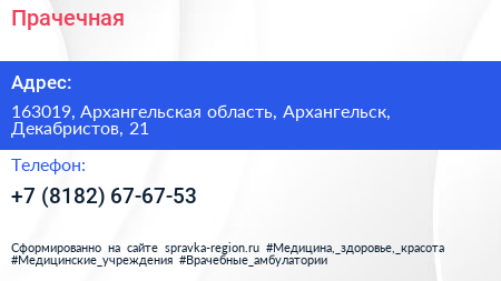 Прачечная по адресу 163019, Архангельская область, Архангельск, Декабристов, 21 в дальнейшем Организация, размещена в следующих категориях: