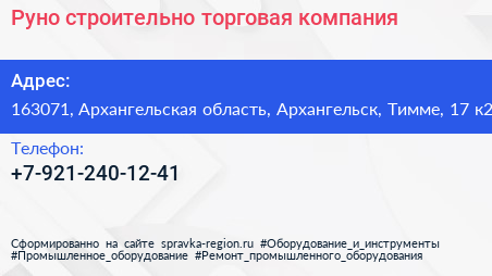 Руно, строительно-торговая компания по адресу 163071, Архангельская область, Архангельск, Тимме, 17 к2 в дальнейшем Организация, размещена в следующих категориях: