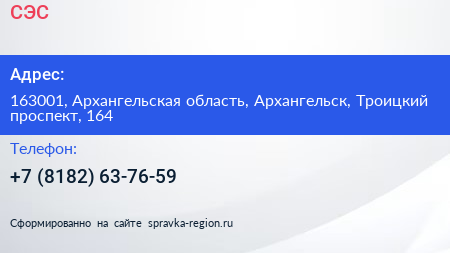 СЭС по адресу 163001, Архангельская область, Архангельск, Троицкий проспект, 164 в дальнейшем Организация, размещена в следующих категориях:
