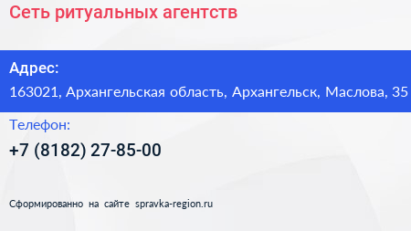 Сеть ритуальных агентств по адресу 163021, Архангельская область, Архангельск, Маслова, 35 в дальнейшем Организация, размещена в следующих категориях: