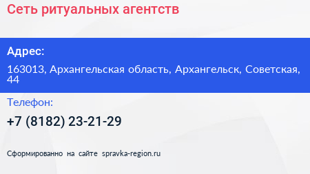 Сеть ритуальных агентств по адресу 163013, Архангельская область, Архангельск, Советская, 44 в дальнейшем Организация, размещена в следующих категориях: