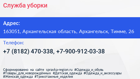 Служба уборки по адресу 163051, Архангельская область, Архангельск, Тимме, 26 в дальнейшем Организация, размещена в следующих категориях: