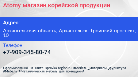 Atomy, магазин корейской продукции по адресу Архангельская область, Архангельск, Троицкий проспект, 10 в дальнейшем Организация, размещена в следующих категориях:
