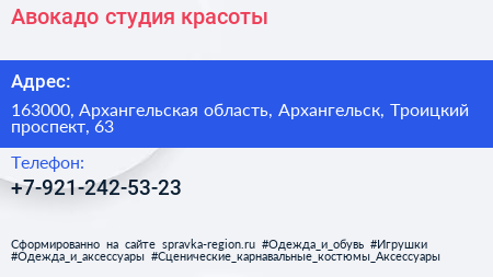 Авокадо, студия красоты по адресу 163000, Архангельская область, Архангельск, Троицкий проспект, 63 в дальнейшем Организация, размещена в следующих категориях: