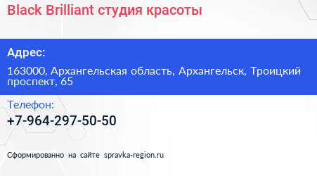 Black Brilliant, студия красоты по адресу 163000, Архангельская область, Архангельск, Троицкий проспект, 65 в дальнейшем Организация, размещена в следующих категориях: