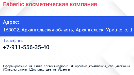 Faberlic, косметическая компания по адресу 163002, Архангельская область, Архангельск, Урицкого, 1 в дальнейшем Организация, размещена в следующих категориях: