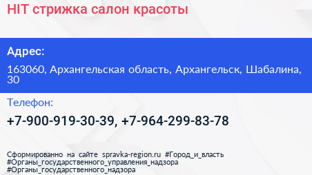 HIT-стрижка, салон красоты по адресу 163060, Архангельская область, Архангельск, Шабалина, 30 в дальнейшем Организация, размещена в следующих категориях: