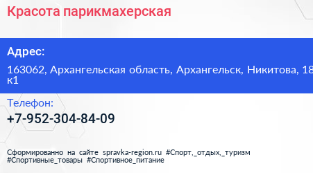 Красота, парикмахерская по адресу 163062, Архангельская область, Архангельск, Никитова, 18 к1 в дальнейшем Организация, размещена в следующих категориях:
