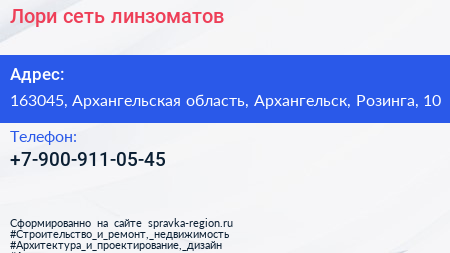 Лори, сеть линзоматов по адресу 163045, Архангельская область, Архангельск, Розинга, 10 в дальнейшем Организация, размещена в следующих категориях:
