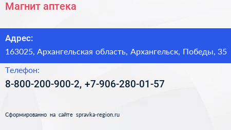 Магнит, аптека по адресу 163025, Архангельская область, Архангельск, Победы, 35 в дальнейшем Организация, размещена в следующих категориях: