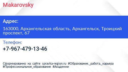 Makarovsky по адресу 163000, Архангельская область, Архангельск, Троицкий проспект, 67 в дальнейшем Организация, размещена в следующих категориях: