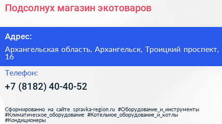 Подсолнух, магазин экотоваров по адресу Архангельская область, Архангельск, Троицкий проспект, 16 в дальнейшем Организация, размещена в следующих категориях: