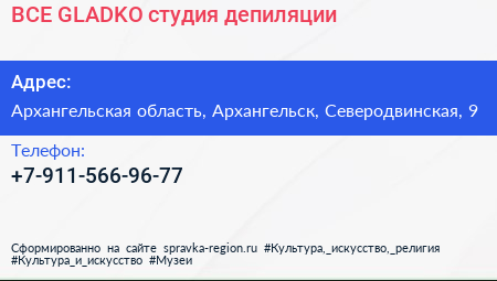 ВСЕ GLADKO, студия депиляции по адресу Архангельская область, Архангельск, Северодвинская, 9 в дальнейшем Организация, размещена в следующих категориях: