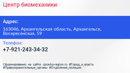 Центр биомеханики по адресу 163046, Архангельская область, Архангельск, Воскресенская, 59 в дальнейшем Организация, размещена в следующих категориях: