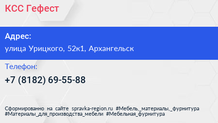 КСС Гефест по адресу улица Урицкого, 52к1, Архангельск в дальнейшем Организация, размещена в следующих категориях: