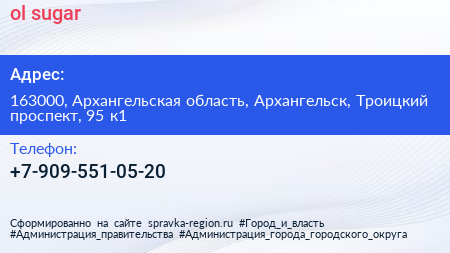 ol.sugar по адресу 163000, Архангельская область, Архангельск, Троицкий проспект, 95 к1 в дальнейшем Организация, размещена в следующих категориях: