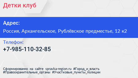 Детки, клуб по адресу 12 к2, улица Рублёвское предместье, Жилой комплекс «Рублёвское предместье», Глухово, городской округ Красногорск, Московская область, Центральный федеральный округ, 143421, Россия в дальнейшем Организация, размещена в следующих категориях:
