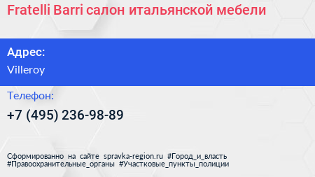Fratelli Barri, салон итальянской мебели по адресу Villeroy в дальнейшем Организация, размещена в следующих категориях: