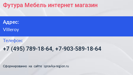 Футура-Мебель, интернет-магазин по адресу Villeroy в дальнейшем Организация, размещена в следующих категориях:
