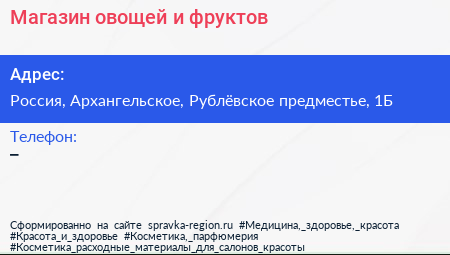 Магазин овощей и фруктов по адресу 1Б, Рублевское предместье, Жилой комплекс «Рублёвское предместье», Глухово, городской округ Красногорск, Московская область, Центральный федеральный округ, 143421, Россия в дальнейшем Организация, размещена в следующих категориях: