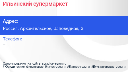 Ильинский, супермаркет по адресу 3, Заповедная улица, Жилой комплекс «Ильинские луга», Ильинское-Усово, городской округ Красногорск, Московская область, Центральный федеральный округ, 143421, Россия в дальнейшем Организация, размещена в следующих категориях: