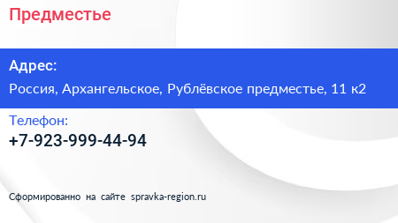 Предместье по адресу Ароматный мир, 11 к2, улица Рублёвское предместье, Жилой комплекс «Рублёвское предместье», Глухово, городской округ Красногорск, Московская область, Центральный федеральный округ, 143421, Россия в дальнейшем Организация, размещена в следующих категориях: