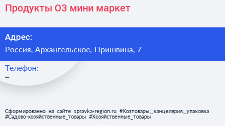 Продукты О3, мини-маркет по адресу 7, улица Пришвина, Жилой комплекс «Опалиха 03», Опалиха, Красногорск, городской округ Красногорск, Московская область, Центральный федеральный округ, 143444, Россия в дальнейшем Организация, размещена в следующих категориях: