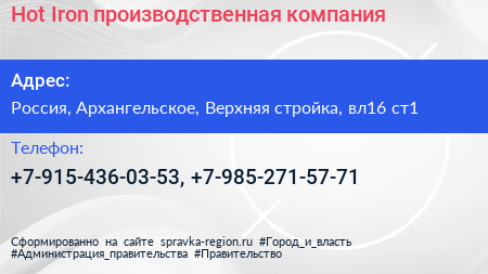 Hot Iron, производственная компания по адресу Заповедная улица, Жилой комплекс «Ильинские луга», Ильинское-Усово, городской округ Красногорск, Московская область, Центральный федеральный округ, 143421, Россия в дальнейшем Организация, размещена в следующих категориях: