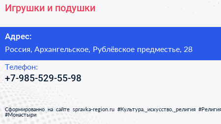 Игрушки и подушки по адресу 28, улица Рублёвское предместье, Жилой комплекс «Рублёвское предместье», Глухово, городской округ Красногорск, Московская область, Центральный федеральный округ, 143421, Россия в дальнейшем Организация, размещена в следующих категориях:
