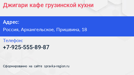Джигари, кафе грузинской кухни по адресу Джигари, 18, улица Пришвина, Жилой комплекс «Опалиха 03», Опалиха, Красногорск, городской округ Красногорск, Московская область, Центральный федеральный округ, 143444, Россия в дальнейшем Организация, размещена в следующих категориях: