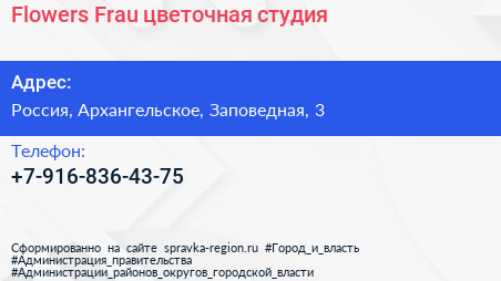 Flowers Frau, цветочная студия по адресу 3, Заповедная улица, Жилой комплекс «Ильинские луга», Ильинское-Усово, городской округ Красногорск, Московская область, Центральный федеральный округ, 143421, Россия в дальнейшем Организация, размещена в следующих категориях: