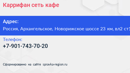 Каррифан, сеть кафе по адресу Торгово-развлекательный центр "Рига Молл", 2, Солнечный бульвар, КП «Новоархангельское», Красногорск, городской округ Красногорск, Московская область, Центральный федеральный округ, 143444, Россия в дальнейшем Организация, размещена в следующих категориях: