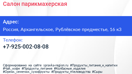 Салон-парикмахерская по адресу 16 к3, улица Рублёвское предместье, Жилой комплекс «Рублёвское предместье», Глухово, городской округ Красногорск, Московская область, Центральный федеральный округ, 143421, Россия в дальнейшем Организация, размещена в следующих категориях: