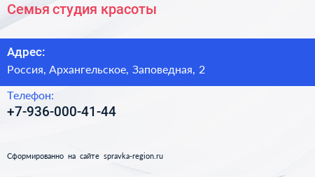 Семья, студия красоты по адресу 2, Заповедная улица, Жилой комплекс «Ильинские луга», Ильинское-Усово, городской округ Красногорск, Московская область, Центральный федеральный округ, 143421, Россия в дальнейшем Организация, размещена в следующих категориях: