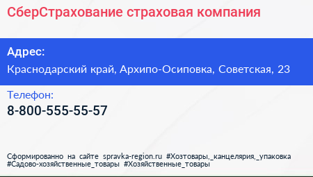 СберСтрахование, страховая компания по адресу Краснодарский край, Архипо-Осиповка, Советская, 23 в дальнейшем Организация, размещена в следующих категориях: