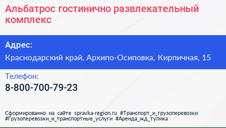 Альбатрос, гостинично-развлекательный комплекс по адресу Краснодарский край, Архипо-Осиповка, Кирпичная, 15 в дальнейшем Организация, размещена в следующих категориях: