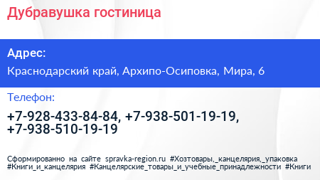 Дубравушка, гостиница по адресу Краснодарский край, Архипо-Осиповка, Мира, 6 в дальнейшем Организация, размещена в следующих категориях: