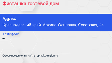 Фисташка, гостевой дом по адресу Краснодарский край, Архипо-Осиповка, Советская, 44 в дальнейшем Организация, размещена в следующих категориях: