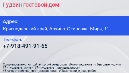 Гудвин, гостевой дом по адресу Краснодарский край, Архипо-Осиповка, Мира, 11 в дальнейшем Организация, размещена в следующих категориях: