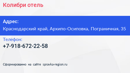 Колибри, отель по адресу Краснодарский край, Архипо-Осиповка, Пограничная, 35 в дальнейшем Организация, размещена в следующих категориях: