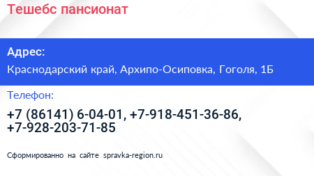 Тешебс, пансионат по адресу Краснодарский край, Архипо-Осиповка, Гоголя, 1Б в дальнейшем Организация, размещена в следующих категориях: