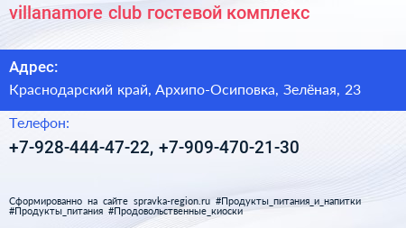 villanamore.club, гостевой комплекс по адресу Краснодарский край, Архипо-Осиповка, Зелёная, 23 в дальнейшем Организация, размещена в следующих категориях: