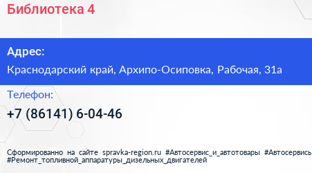 Библиотека №4 по адресу Краснодарский край, Архипо-Осиповка, Рабочая, 31а в дальнейшем Организация, размещена в следующих категориях: