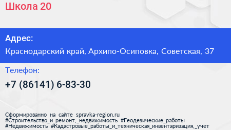 Школа №20 по адресу Краснодарский край, Архипо-Осиповка, Советская, 37 в дальнейшем Организация, размещена в следующих категориях: